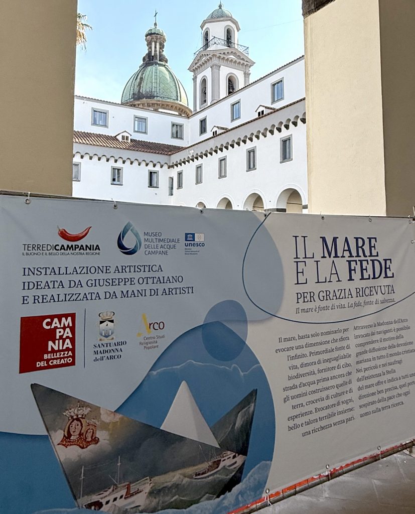 Dalla suggestiva Sala Capitolare del Santuario della Madonna dell’Arco in Sant’Anastasia prende il via Il Mare e la fede, la nuova installazione artistica, ideata da Giuseppe Ottaiano e nata dall’idea di coniugare l’immensa distesa delle acque marine e la tensione all’infinito che il mare richiama e sottolinea, accolta con interesse dal priore Padre Gianpaolo Pagano e dalla comunità dei domenicani. Ben 52 artisti hanno dato vita, insieme a fotografi e ad amanti dell’arte, ad una collettiva itinerante in cui ancora una volta l’acqua è protagonista, in maniera nuova eppure antica. Il Viaggio Continua.